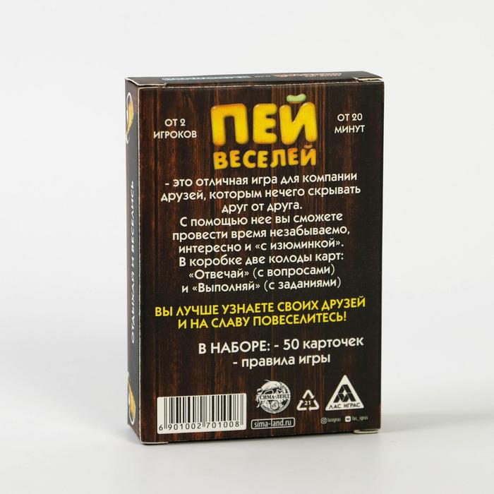 Купить игра для компании "пей веселей" 50 карт от 180 руб. с доставкой до пункта выдачи в Камышине. Интернет магазин ДекаМаркет. Оплата при получении.